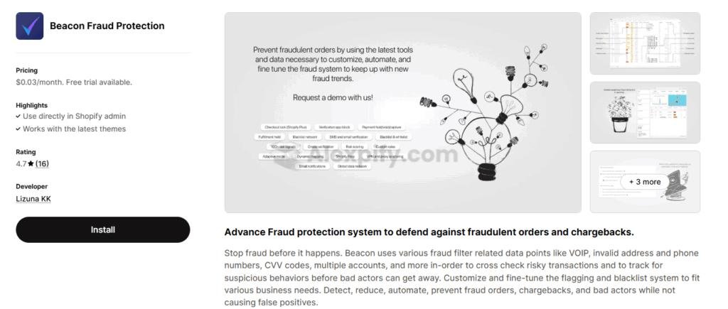 Fraudulent orders are a direct hit to your bottom line, leading to lost products, shipping costs, and chargeback fees. Beacon Fraud Protection acts as an intelligent firewall, analyzing advanced risk signals to automatically block suspicious transactions before they can cause damage. I've found its ability to identify patterns like VOIP usage, invalid addresses, and multiple customer accounts to be highly effective.