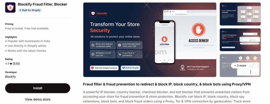 Alternatives: BM: Country blocker IP blocker offers similar functionality with lower-priced plans but might lack some of Blockify’s advanced fraud analytics. Blocky: Fraud Filter Blocker is another option, but without a free plan, it might not suit all budgets.