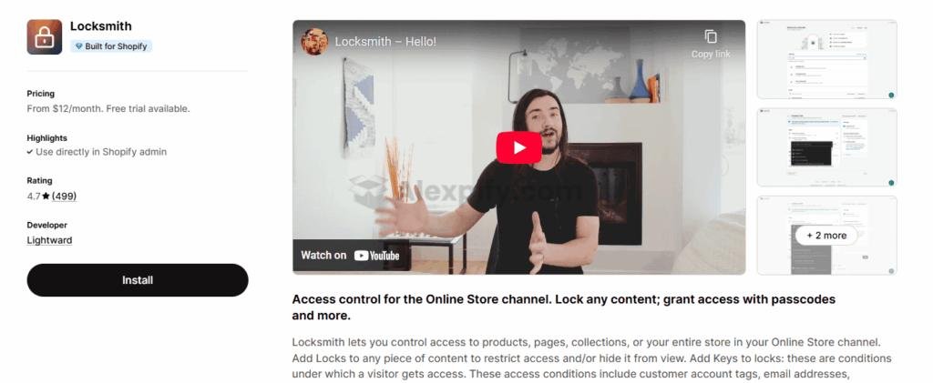 Pricing: Locksmith uses a "pay-what-feels-good" model, suggesting a price based on your store's needs but allowing you to propose a different amount. Typical plans range from $12 to $199 per month.