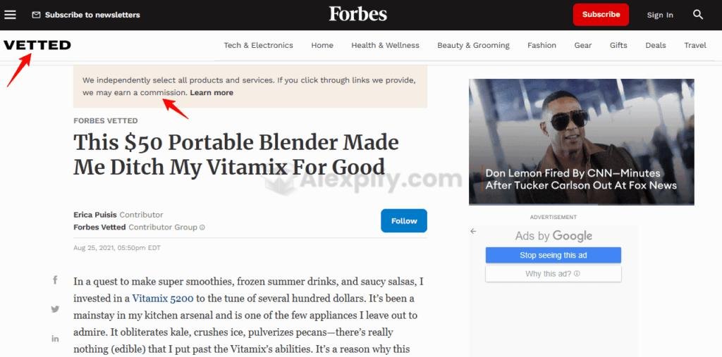 Affiliate marketing involves paying others to promote your products, with affiliates earning commissions on sales. Affiliate reviews, in particular, act as a form of social proof by offering unbiased opinions from third-party sources. Forbes, for example, featured BlendJet in its "vetted" products section, significantly boosting reader trust.