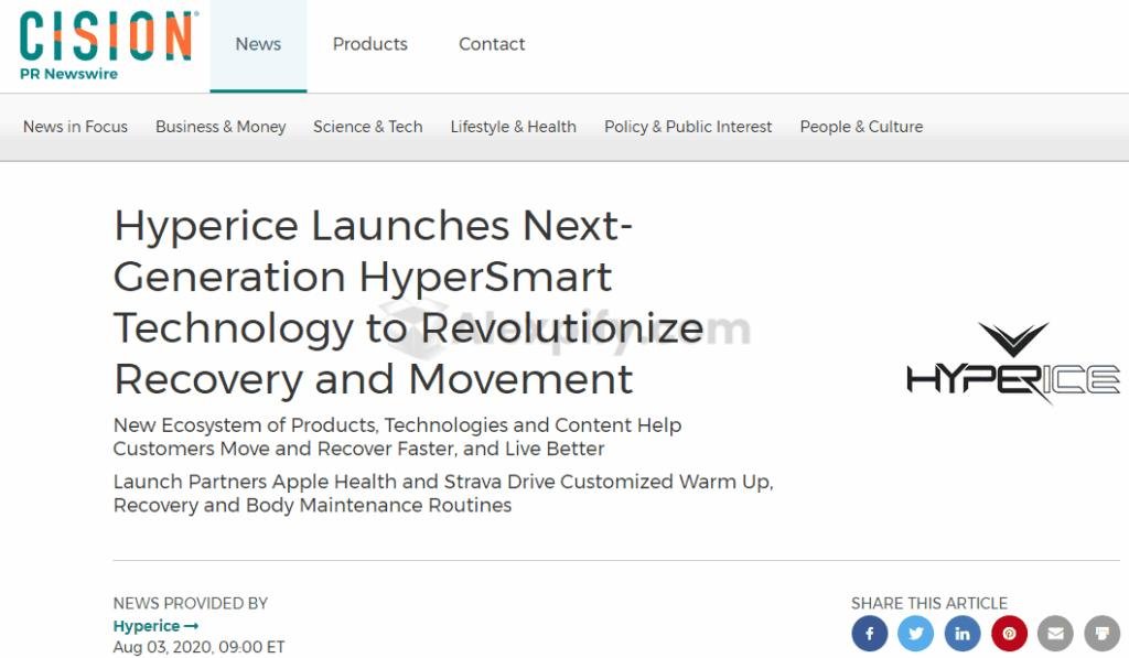 - Issue press releases: Submit press releases about your products or company to relevant organizations. Many platforms offer free publication if you adhere to their guidelines, as Hyperice demonstrates with its press releases.