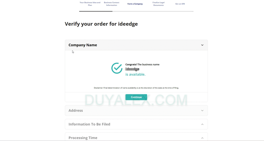 + Click Continue after your Company Name information is uploaded.