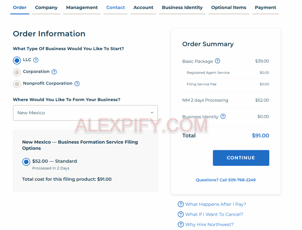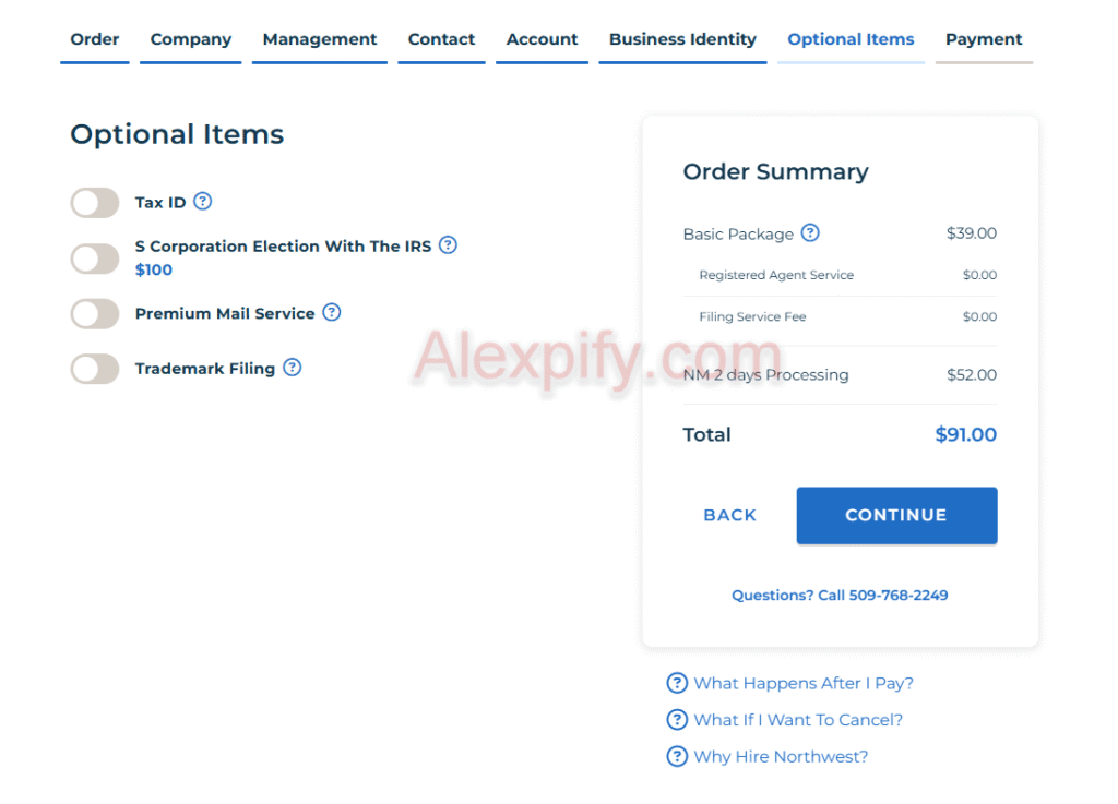 - Northwest’s service: They can obtain your EIN for you (especially convenient if you’re a non-US resident) because the IRS website doesn’t allow foreign applicants to apply online.